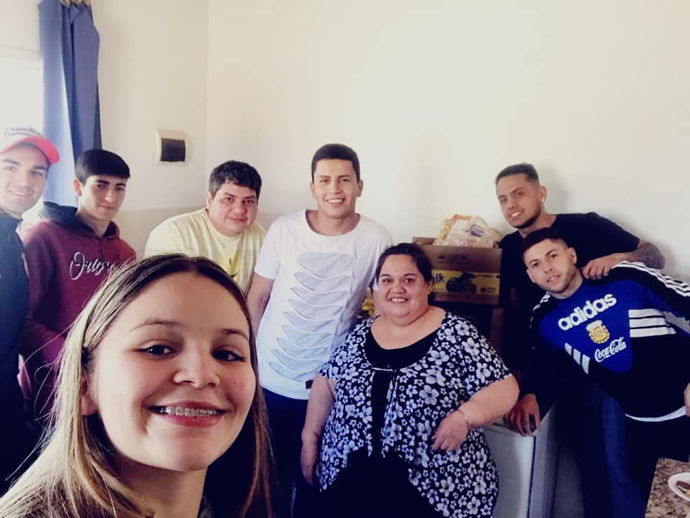 Más tarde el Lunes, mientras tomábamos la merienda nos visitó un grupo de Jóvenes que nos trajeron donaciones y golosinas y se quedaron...